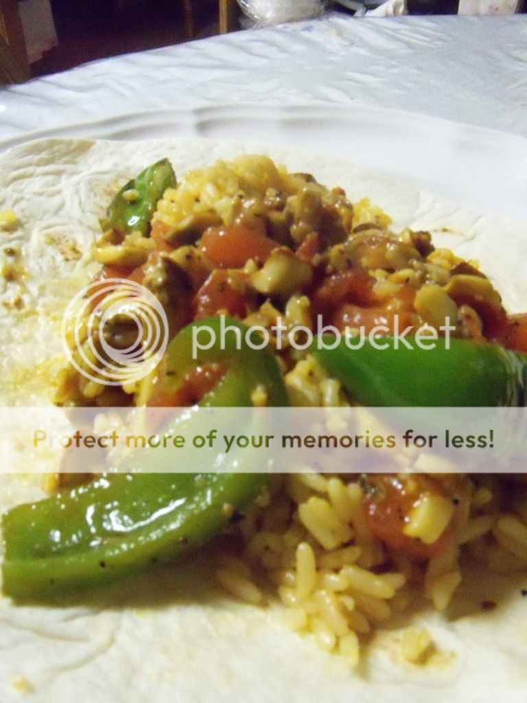 ![]() | I made Mexican rice and burritos. They turned out pretty well, I thought. Don't my veggies and all look pretty? |
